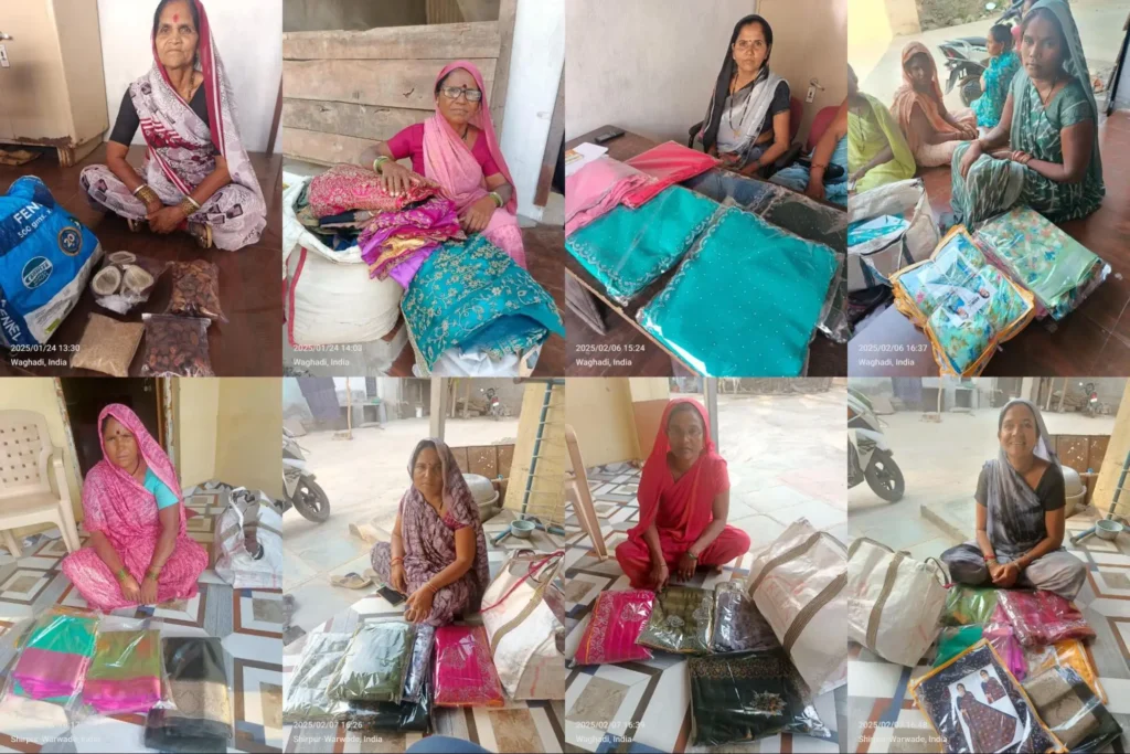 In the lanes of Subhash Nagar, a small village in Dhule district, Maharashtra, twelve women quietly run small clothing businesses from their homes, selling door-to-door. Walking the quiet streets with the load of garments on their heads – they sell sarees, dress materials, and everyday wear to friends, neighbours, and familiar faces.