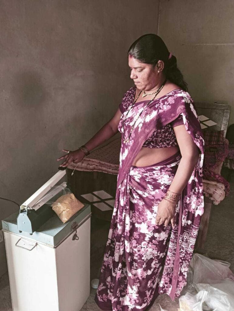 Jayshri was provided with a weighing machine, some proper packaging materials, and tools to make her sales more efficient. With these additions, Jayshri has been able to measure products accurately and package them neatly. And the results have been transformative.