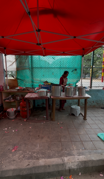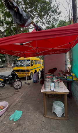Running a food business from the street meant that weather often disrupted her operations. To ensure she had a stable space regardless of climate, Jeeva set up a canopy to protect her kitchen area from rain and sun. She added chairs for customers to make eating at her stall more comfortable.